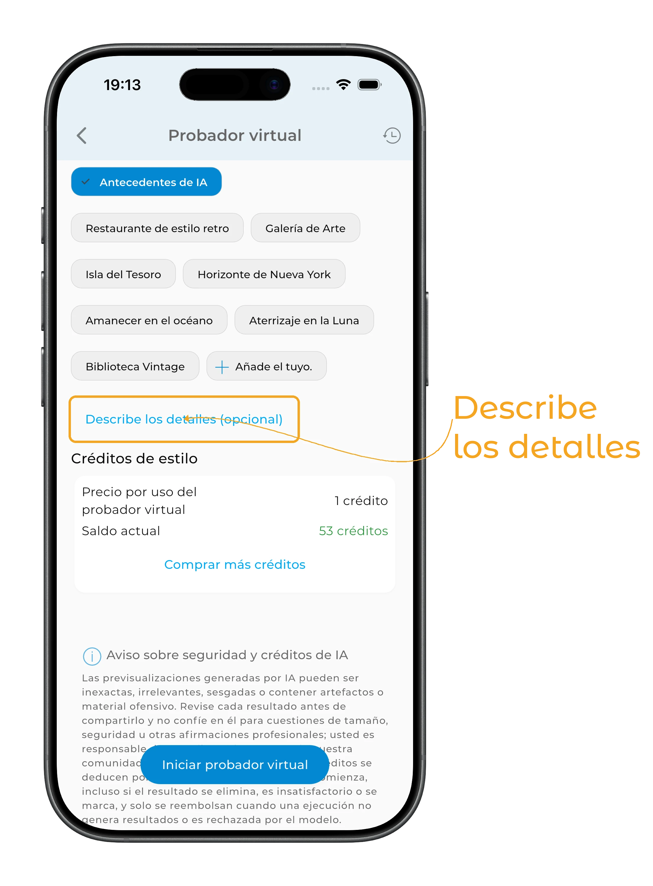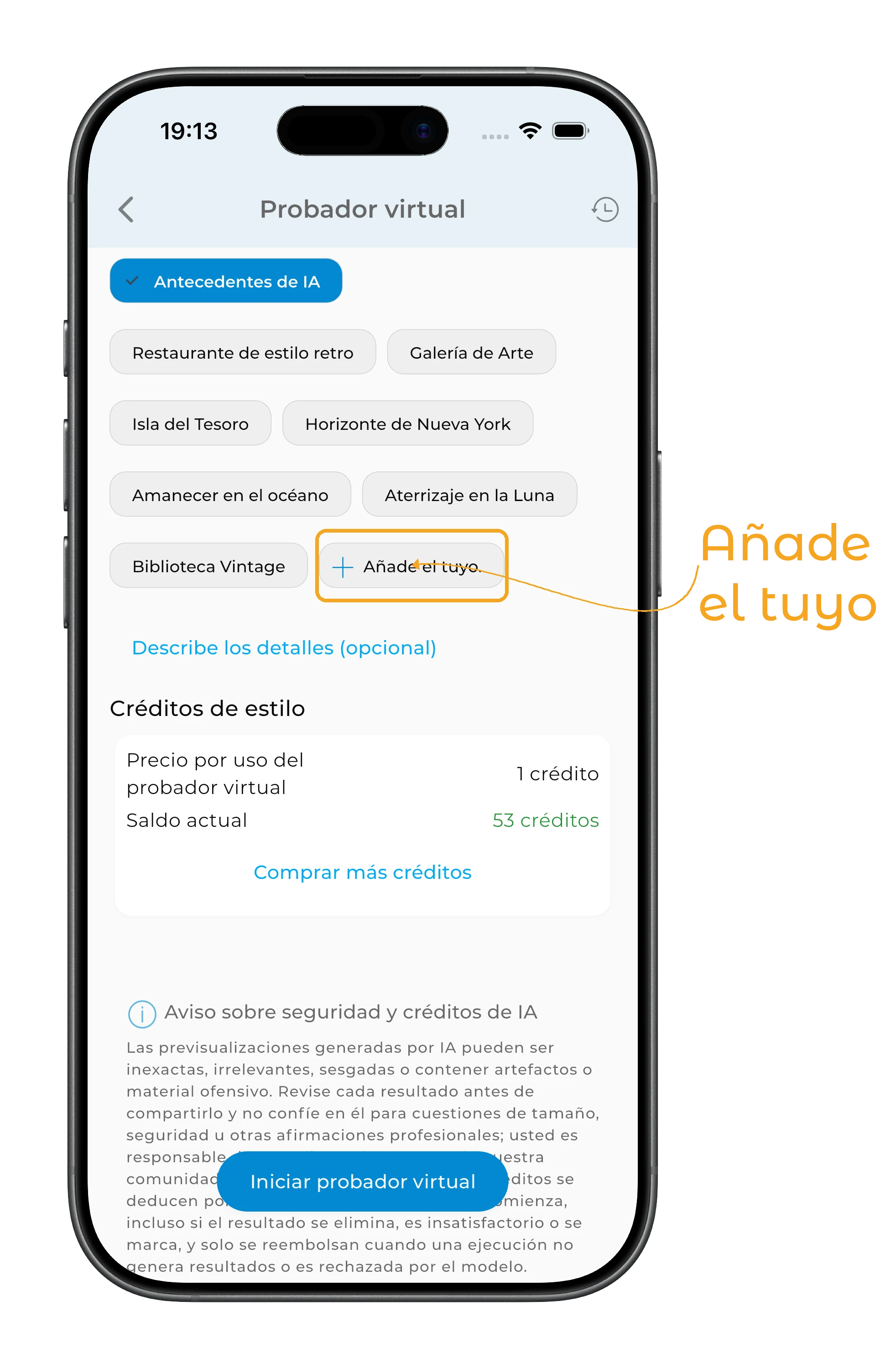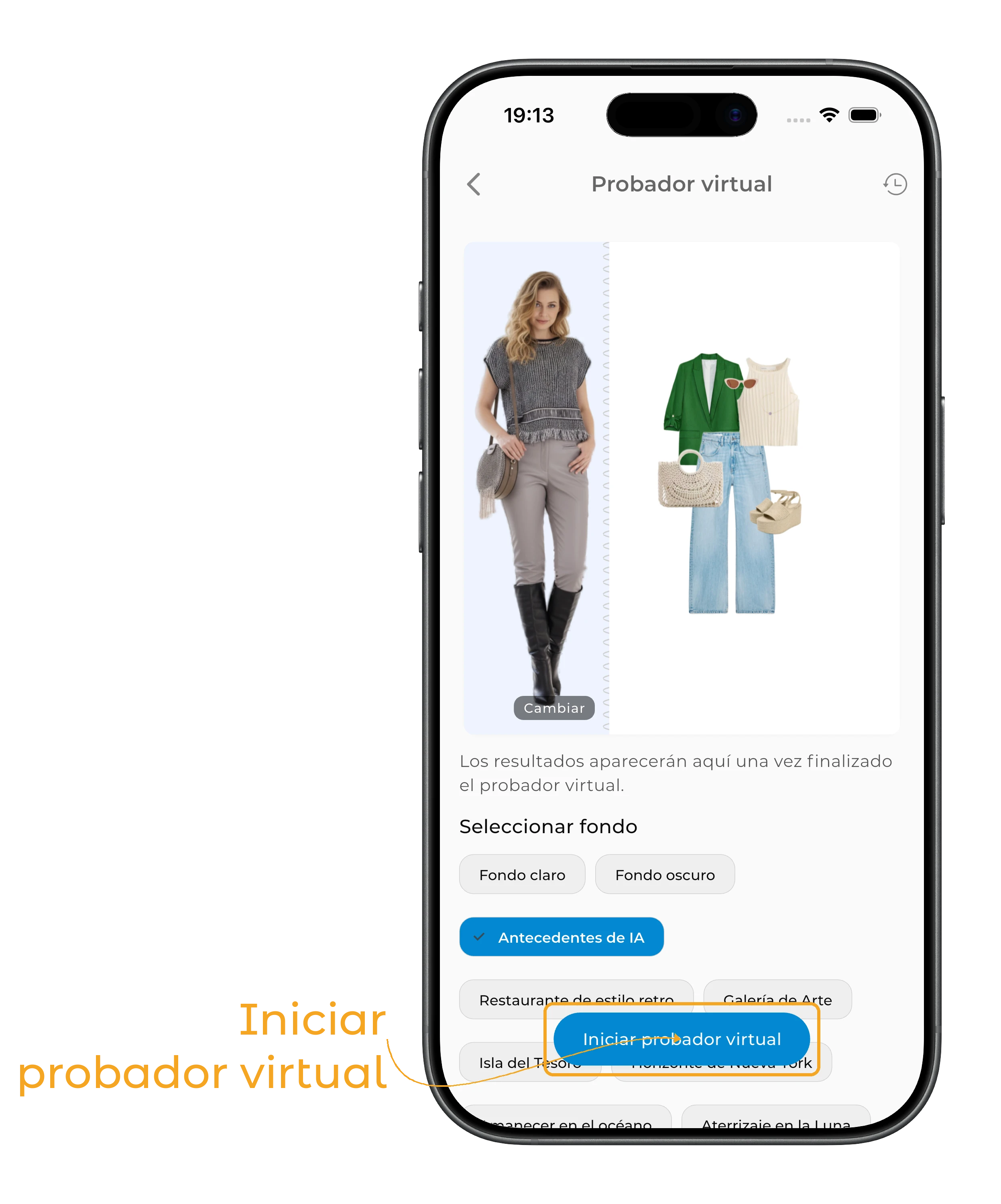 Cuando hayas seleccionado el fondo, pulsa Iniciar probador virtual.
