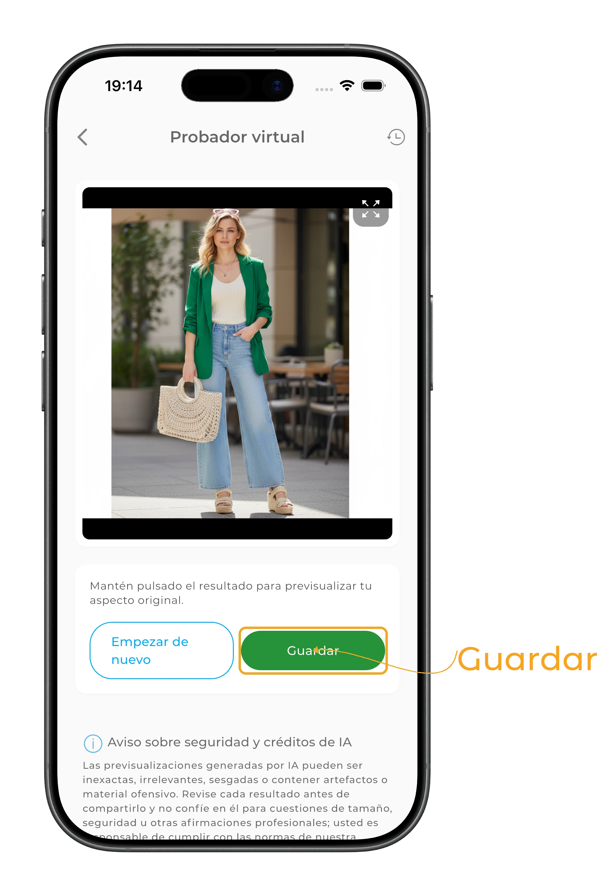 Sí. Una vez terminado el probador virtual, pulsa Guardar y elige guardarla en tu galería o compartirla en redes sociales o apps de mensajería.