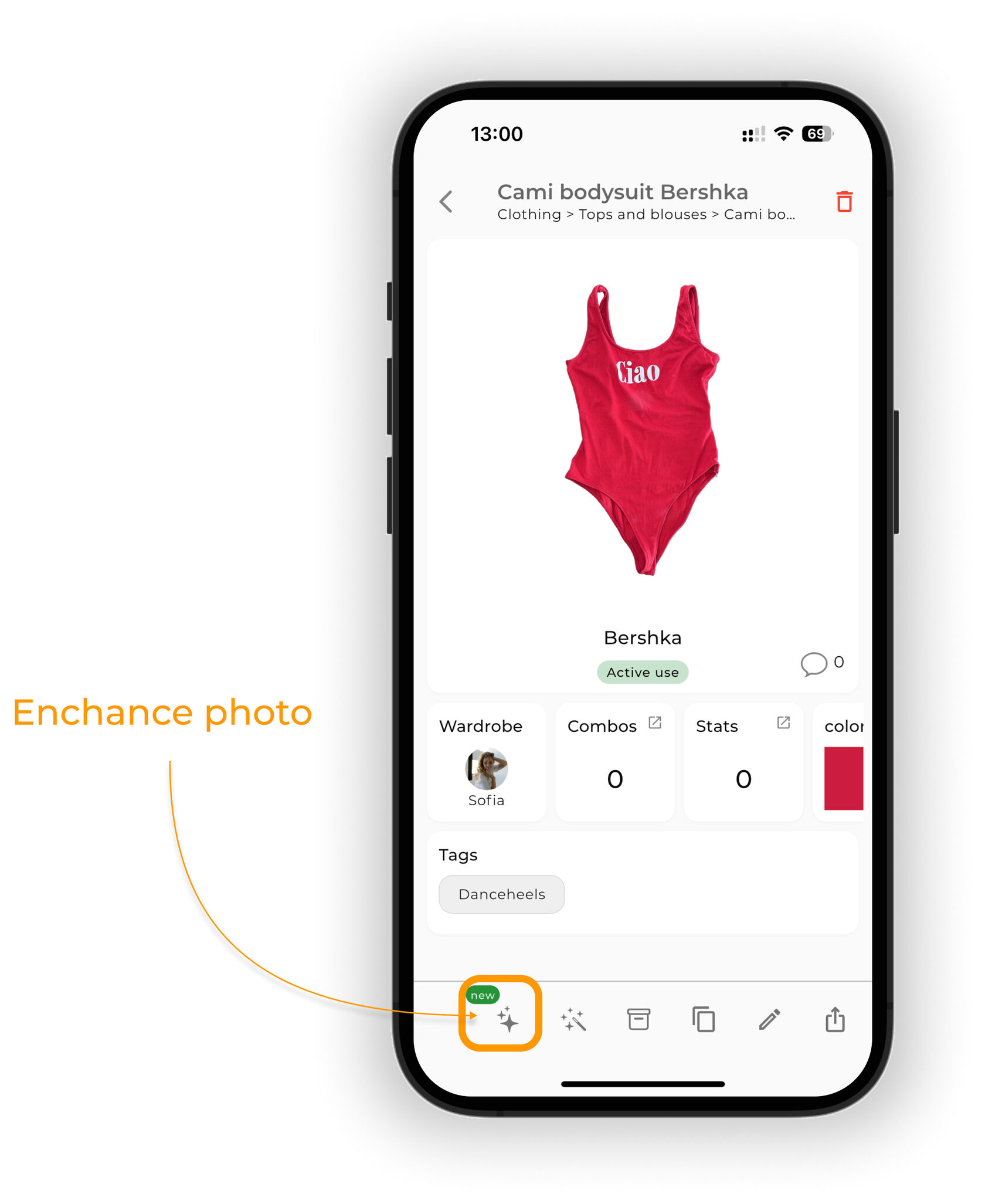 Open the item screen and tap the ✨ icon on the bottom panel.
