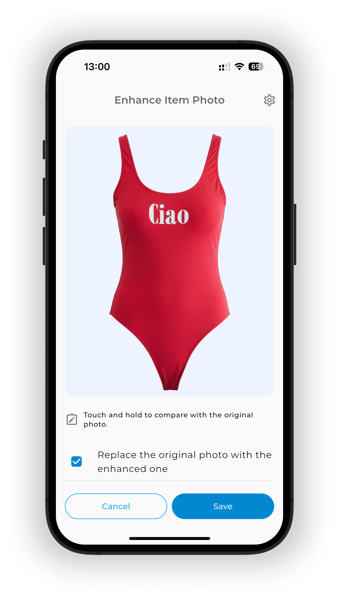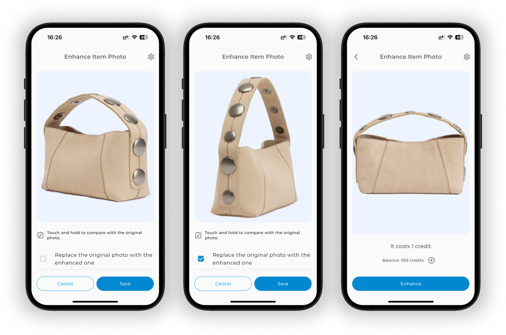 Tap Enhance. Wait a few moments 🕐 — AI will clean the background, crop the image, and enhance the image.