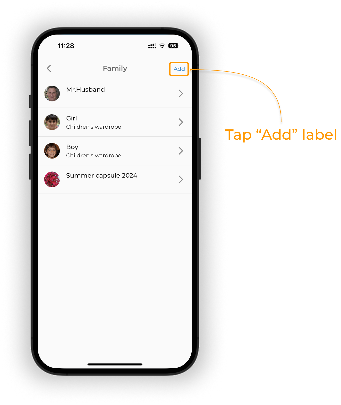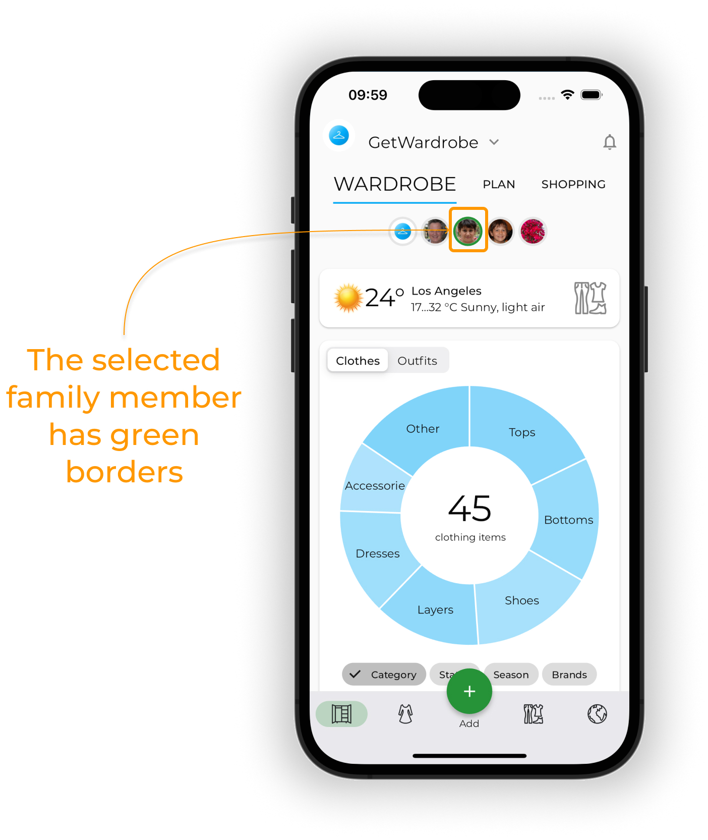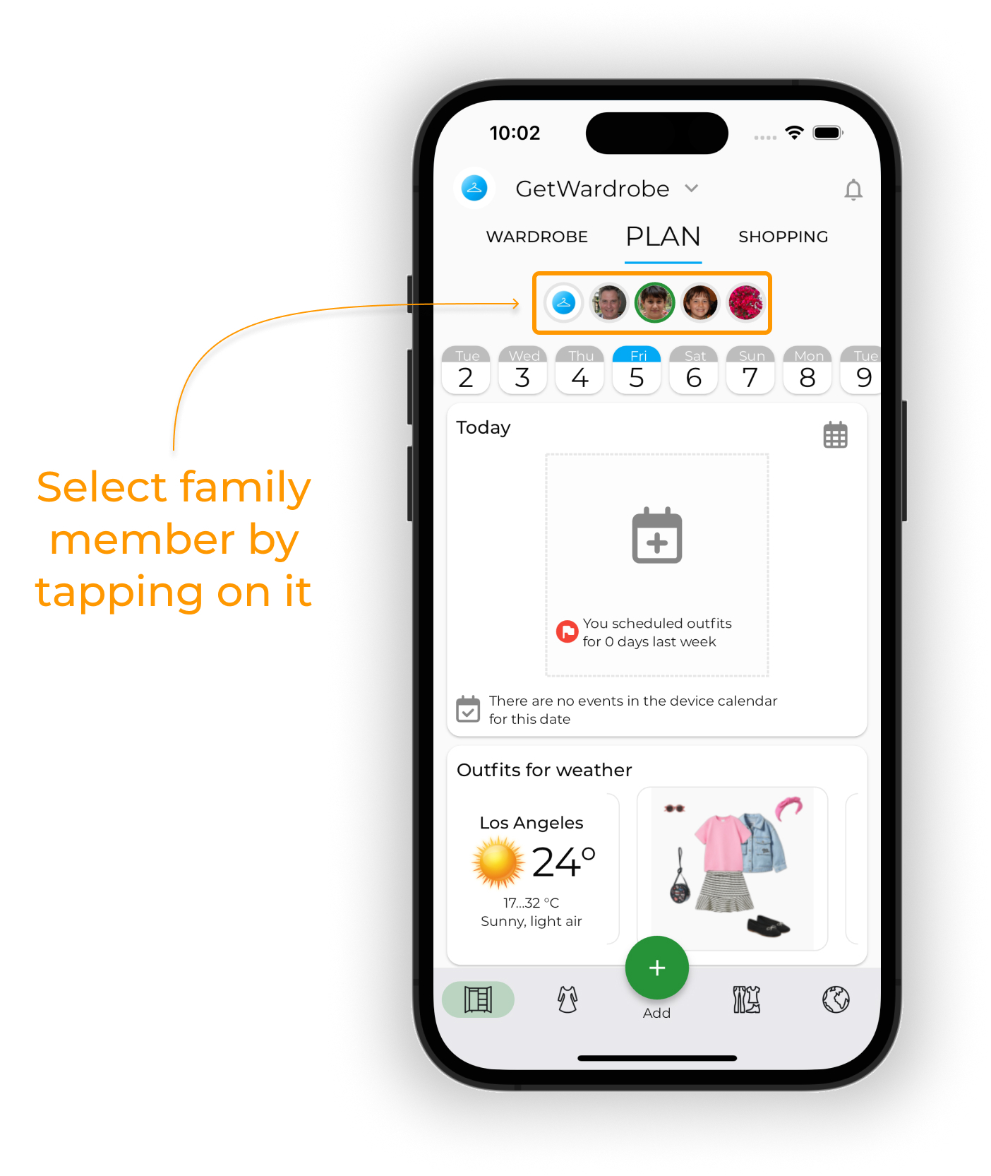 To planOOTD for a specific family member, tap on its avatar on the PLAN screen.
