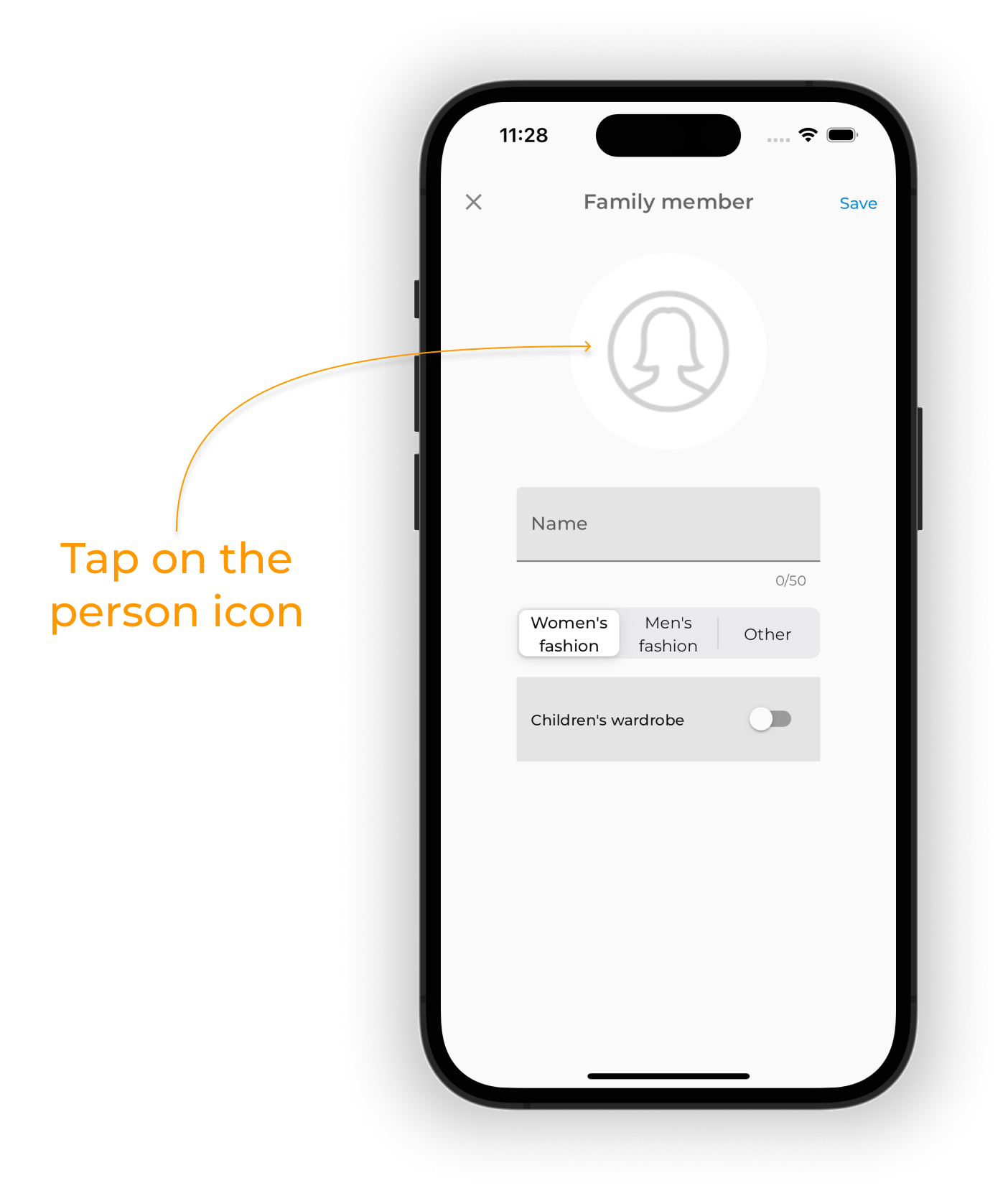 Tap on the person icon to add a photo.