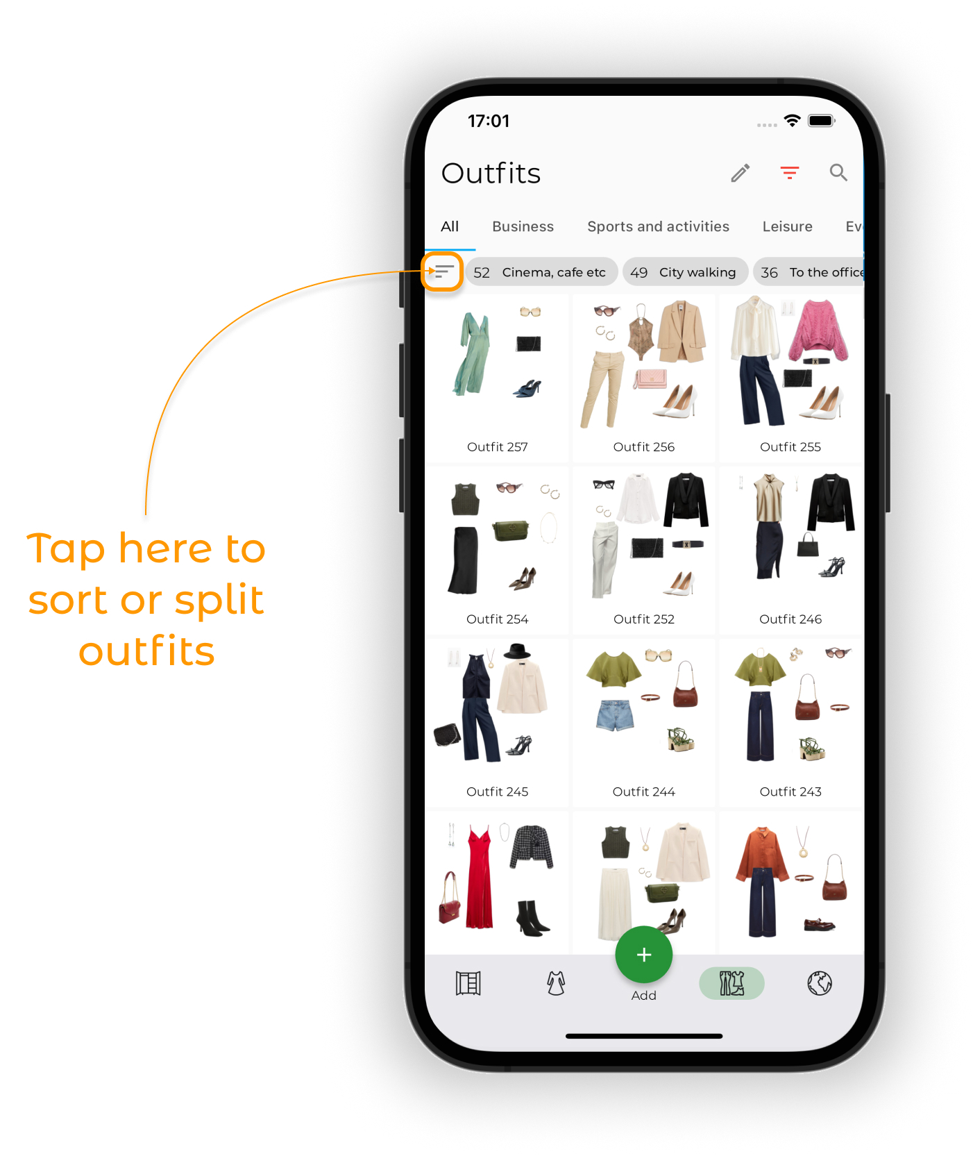 Group your outfits by the occasion tags you assign to them, making it easy to find looks for specific events or activities.