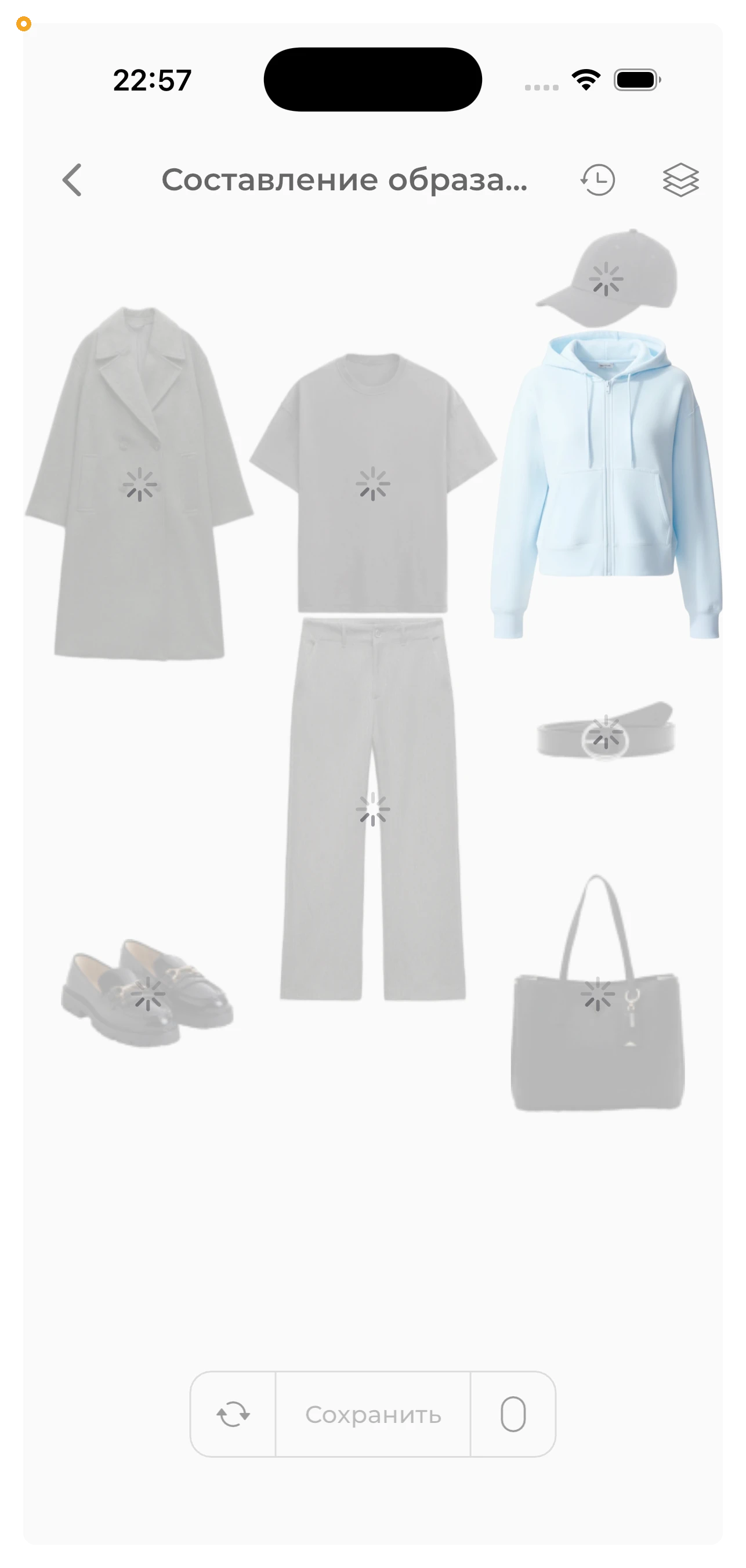 Учтите, что «Создать образ автоматически» работает лучше всего при выборе двух или трёх вещей, таких как топ, низ и обувь/сумка. Если вы выберете слишком много вещей, функция может работать неправильно.