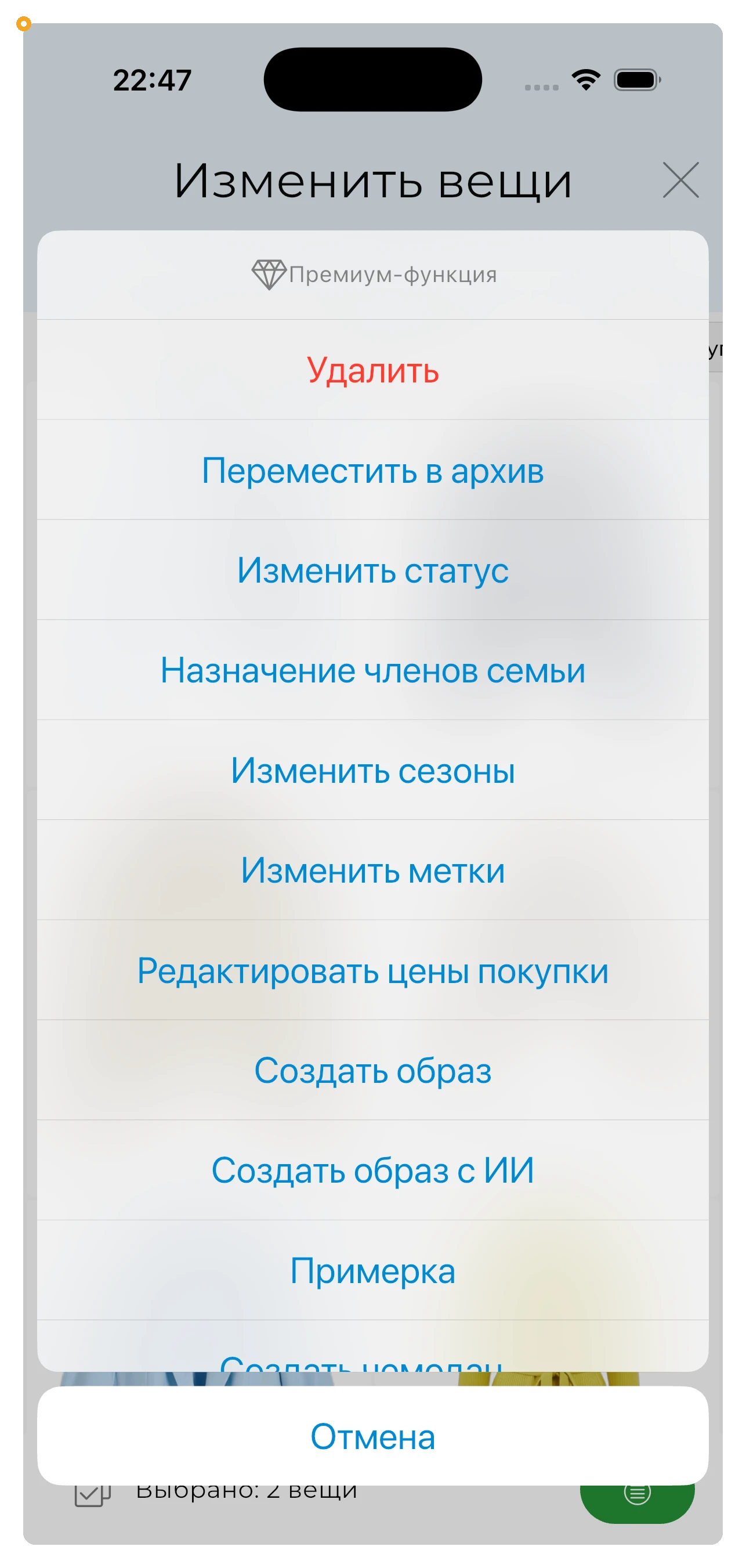 Учтите, что возможность редактирования нескольких вещей одновременно доступна только пользователям с подпиской Премиум.