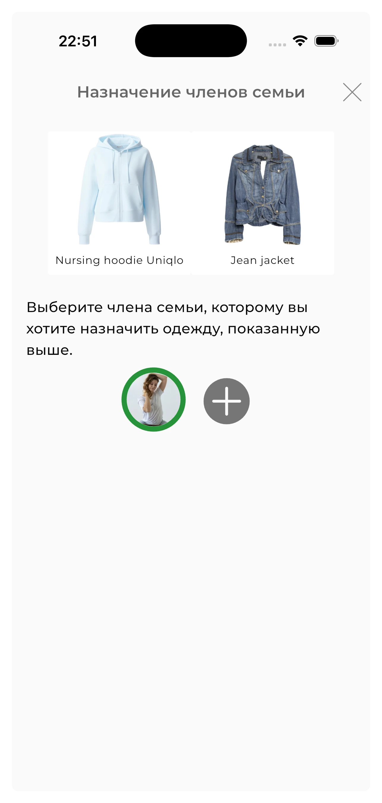Чтобы назначить вещи другому члену семьи, нажмите «Назначить члену семьи» и выберите или добавьте члена семьи, нажав на значок «+».