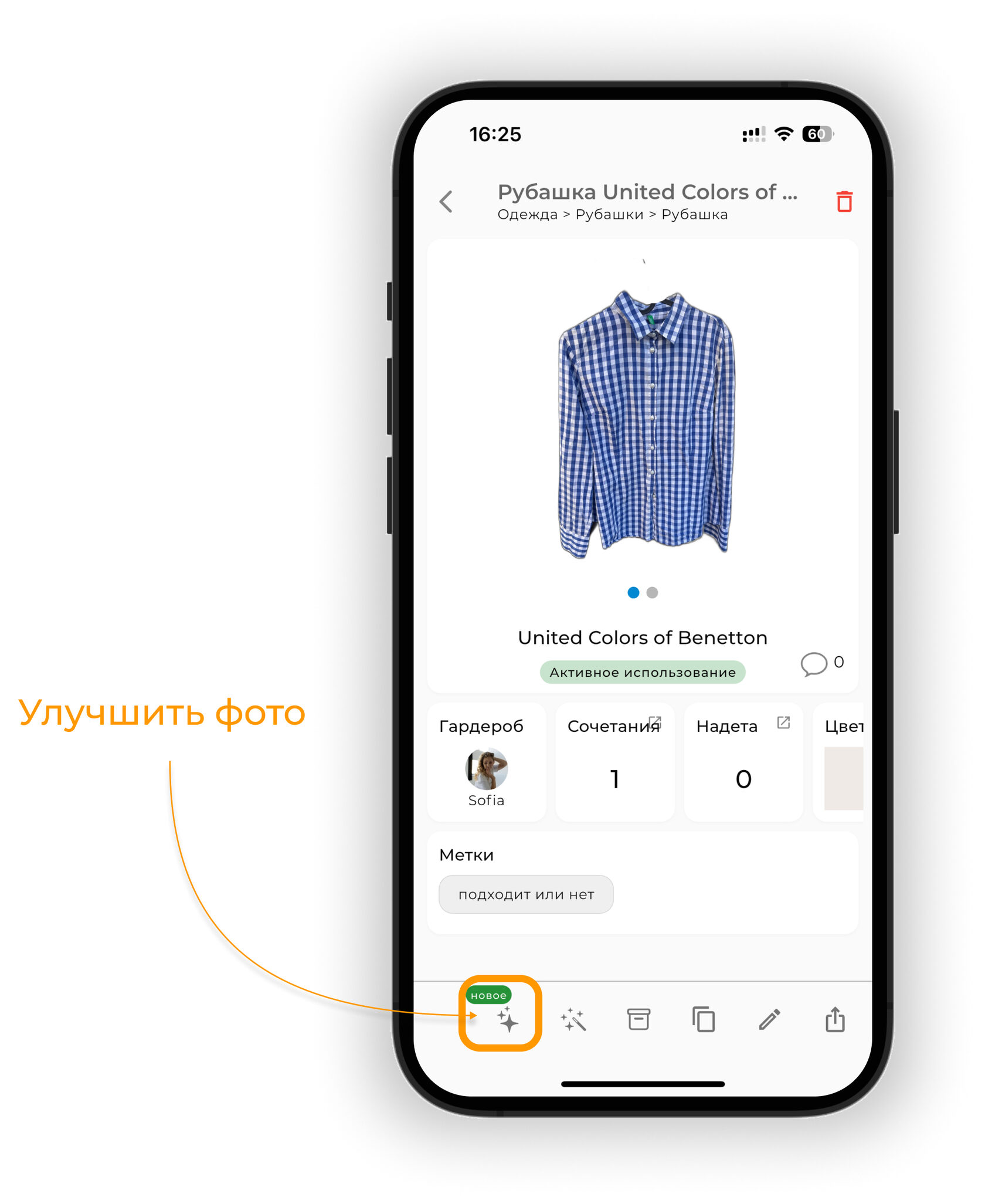 💡 Другой способ: на экране редактирования вещи нажмите на иконку 🪄 под фото.