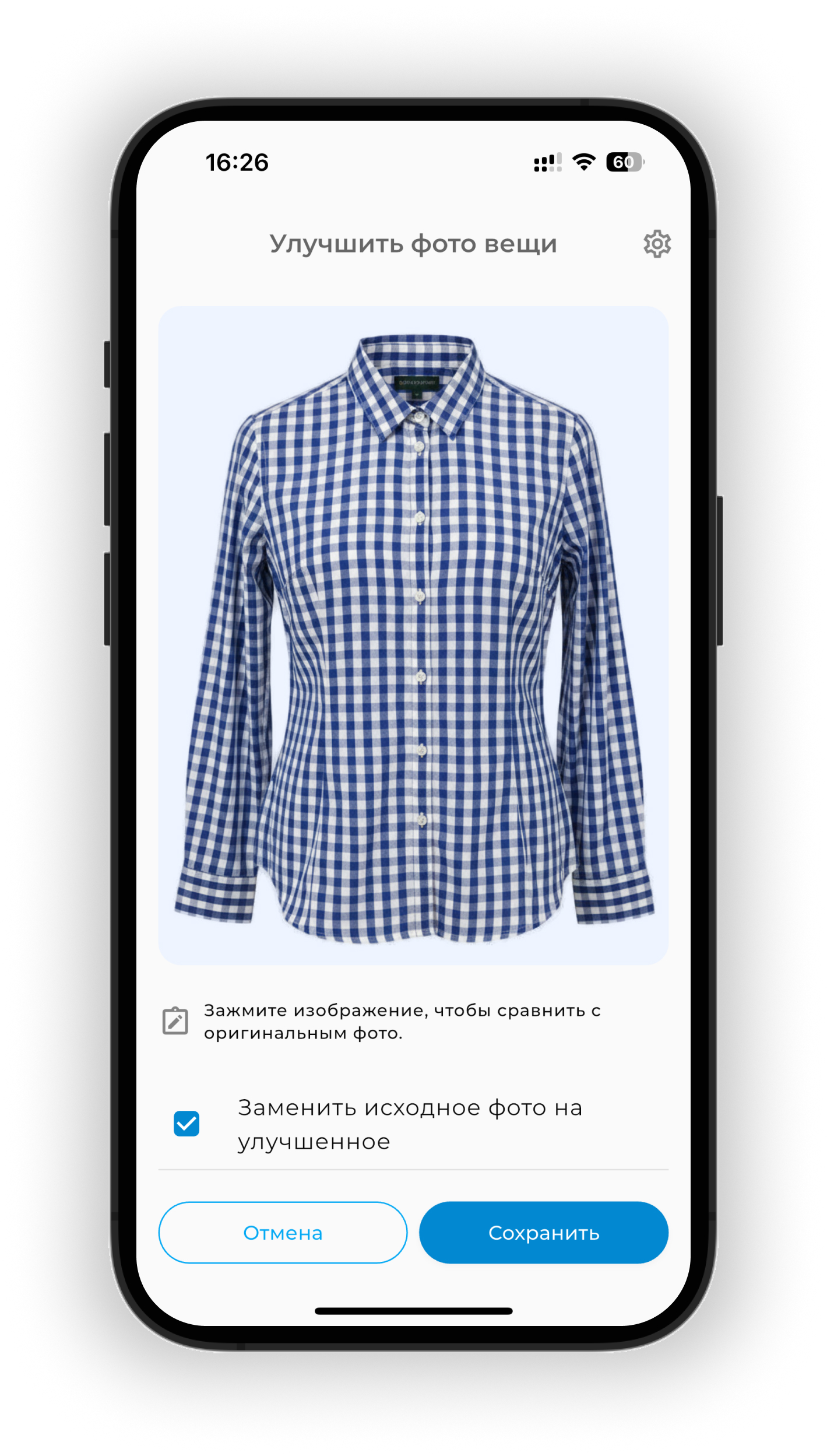 По умолчанию улучшенное изображение заменяет исходное фото. Если хотите сохранить оба варианта, снимите галочку «Заменить исходное фото на улучшенное».