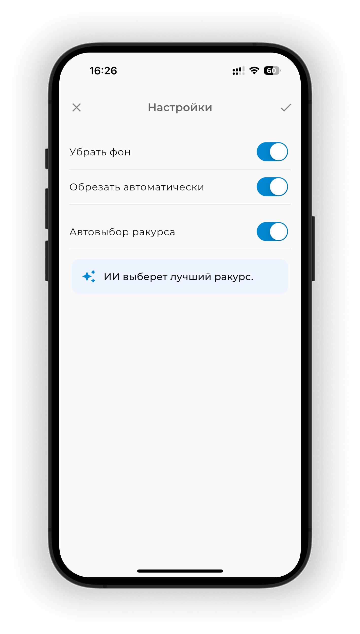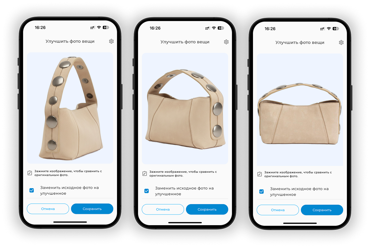 Используйте искусственный интеллект для автоматического удаления фона, кадрирования и улучшения качества фото вещей. Это займёт несколько секунд и сделает фото более аккуратным и профессиональным.