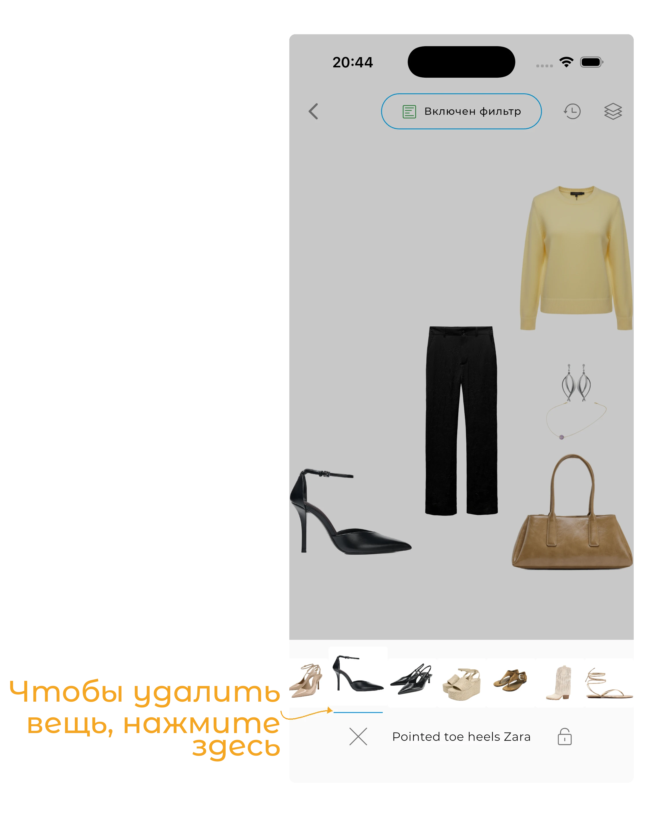 Нажмите на предмет в образе, чтобы: