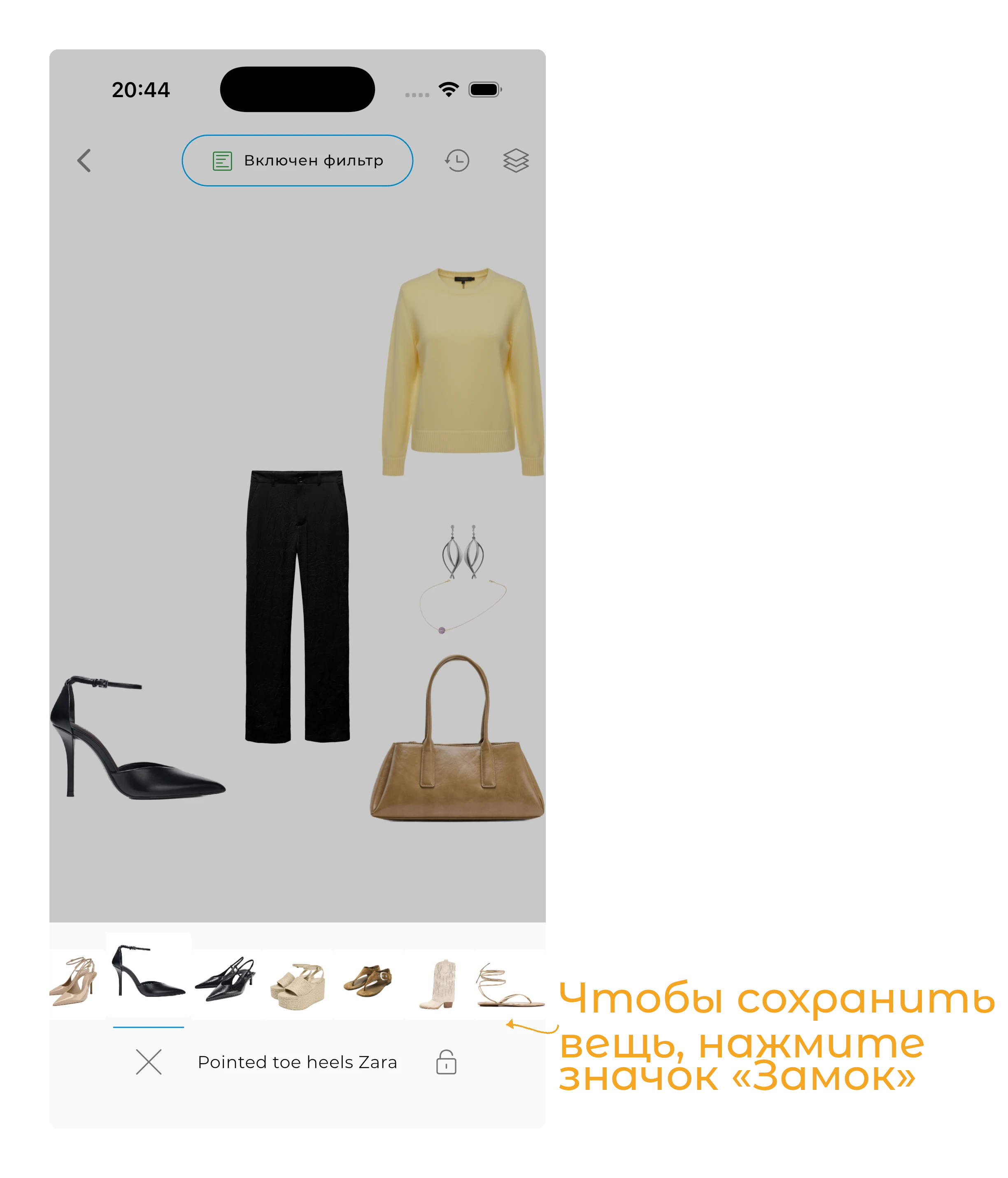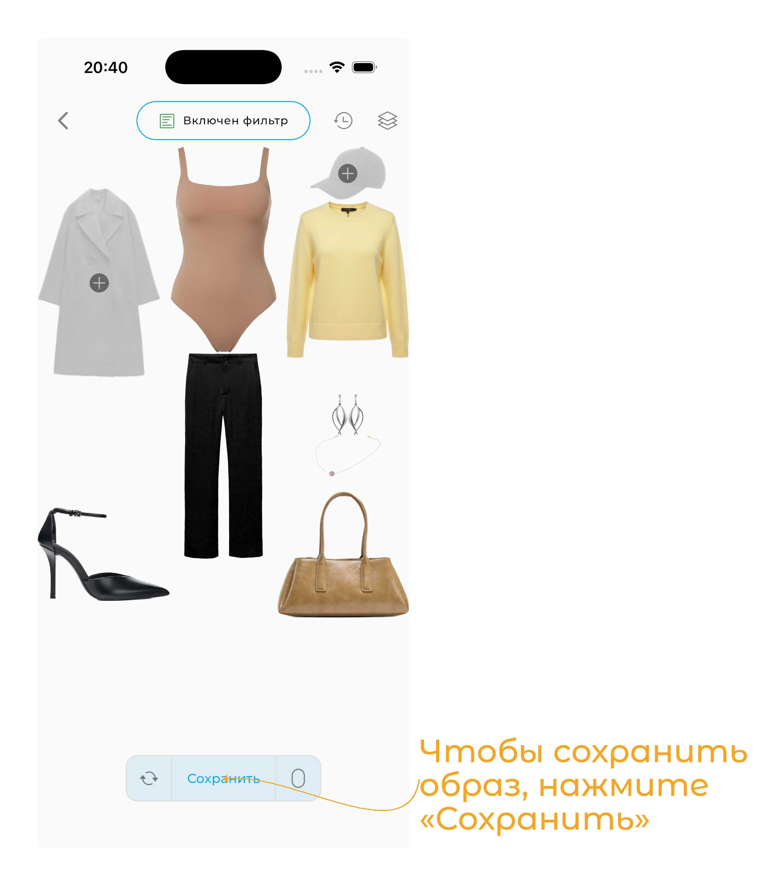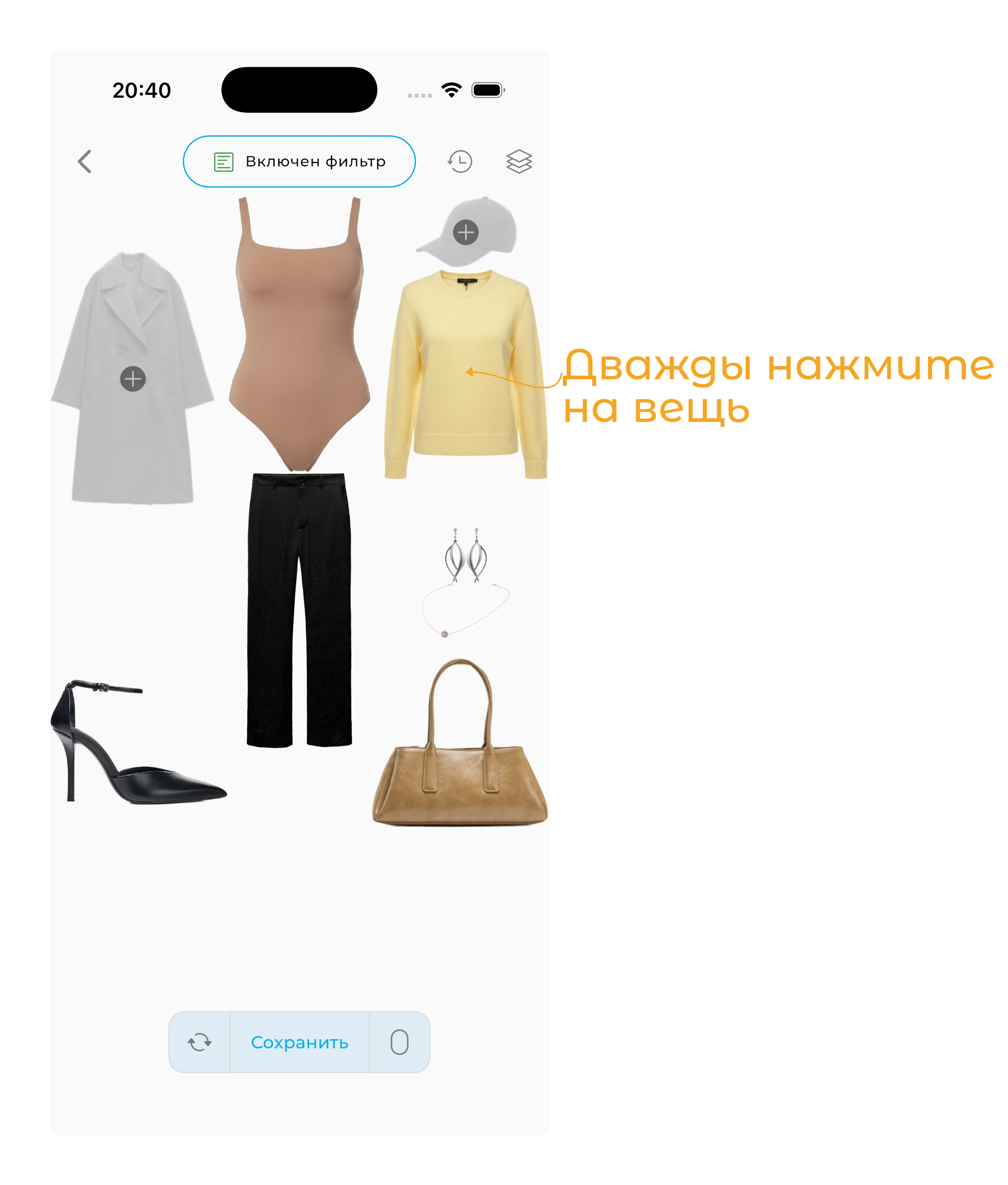 Чтобы создавать автоматические образы, вам нужно иметь как минимум 15 вещей в гардеробе.