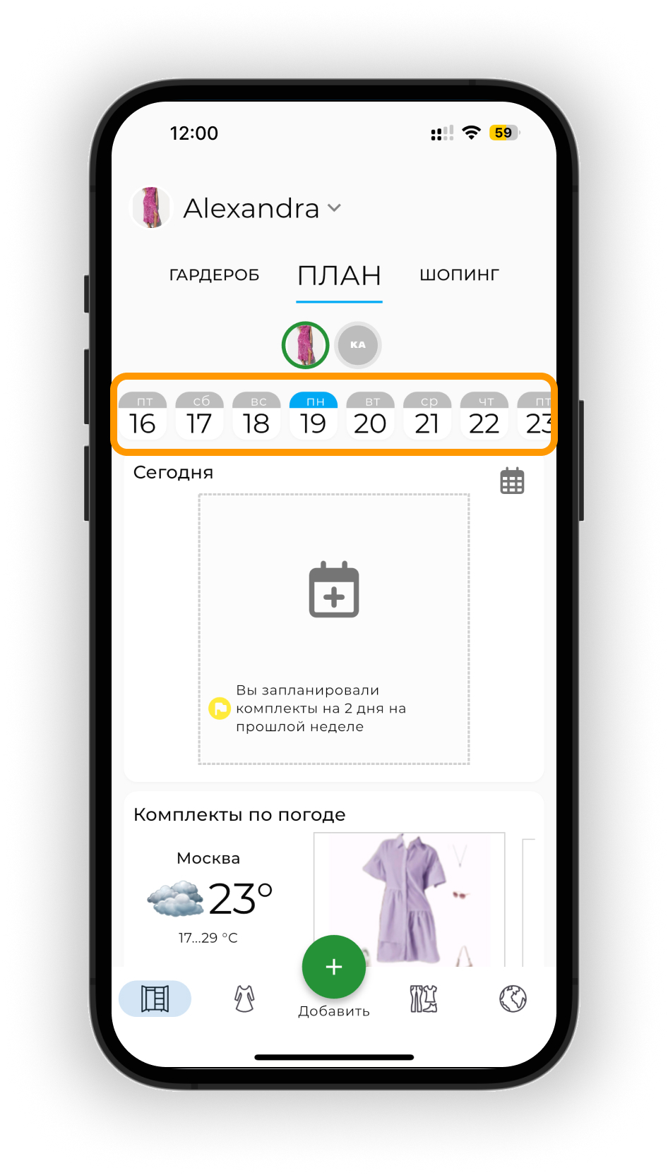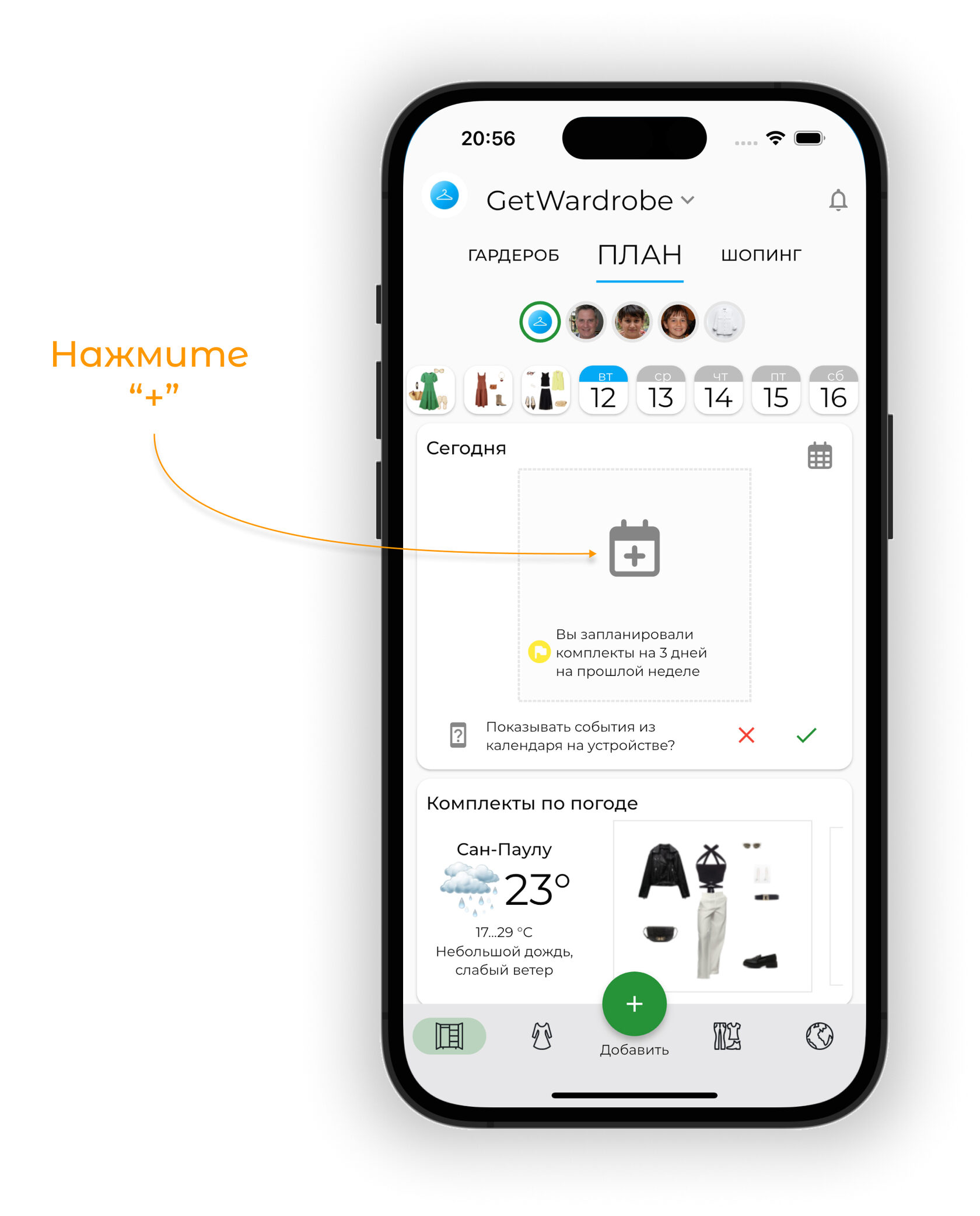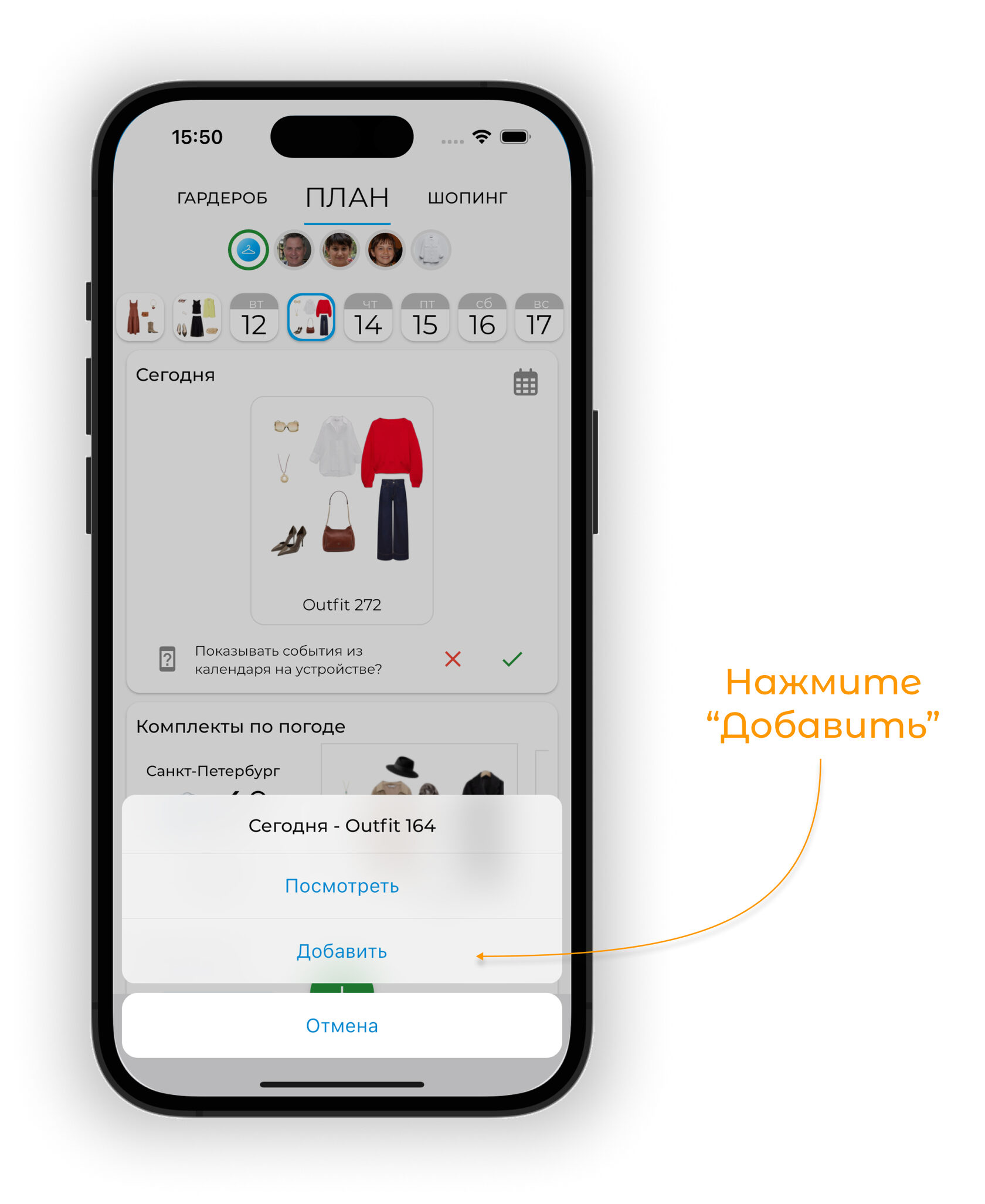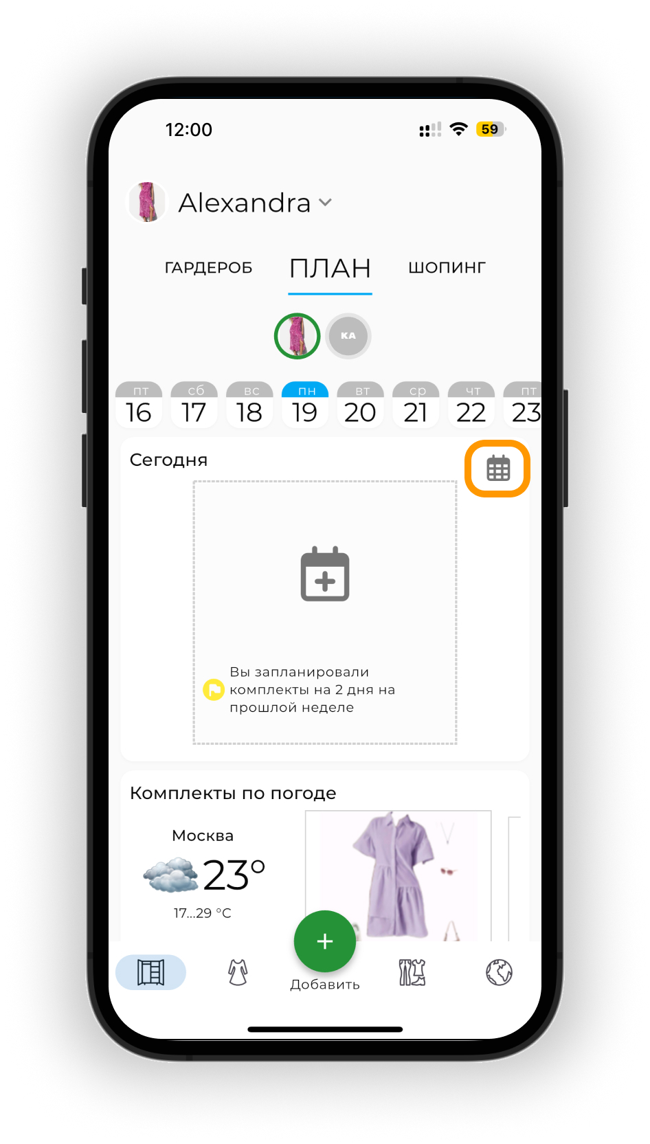 Планируйте образы на будущие даты в календаре. Используйте прогноз погоды для выбора подходящих образов и отслеживайте использование вещей через статистику.