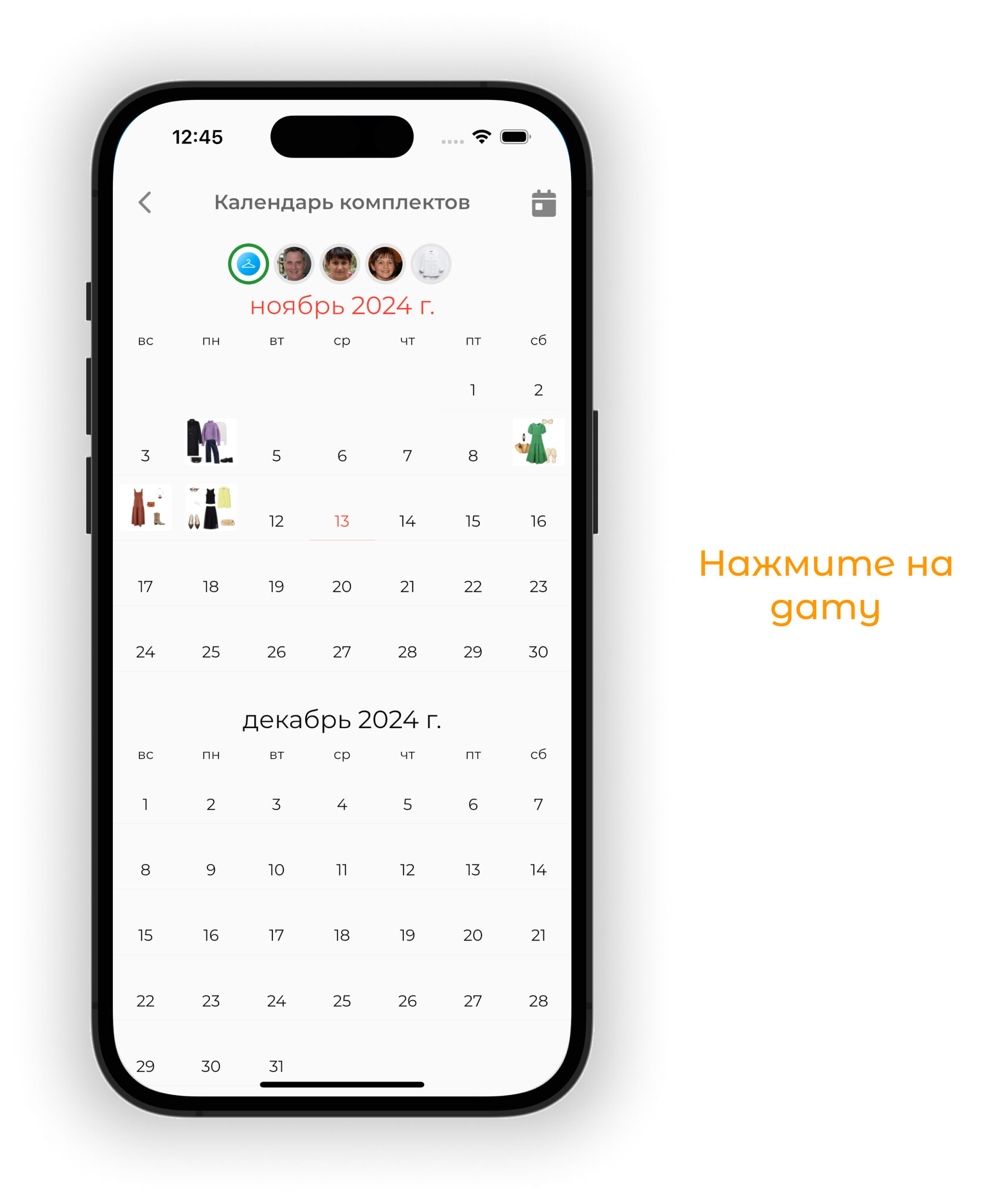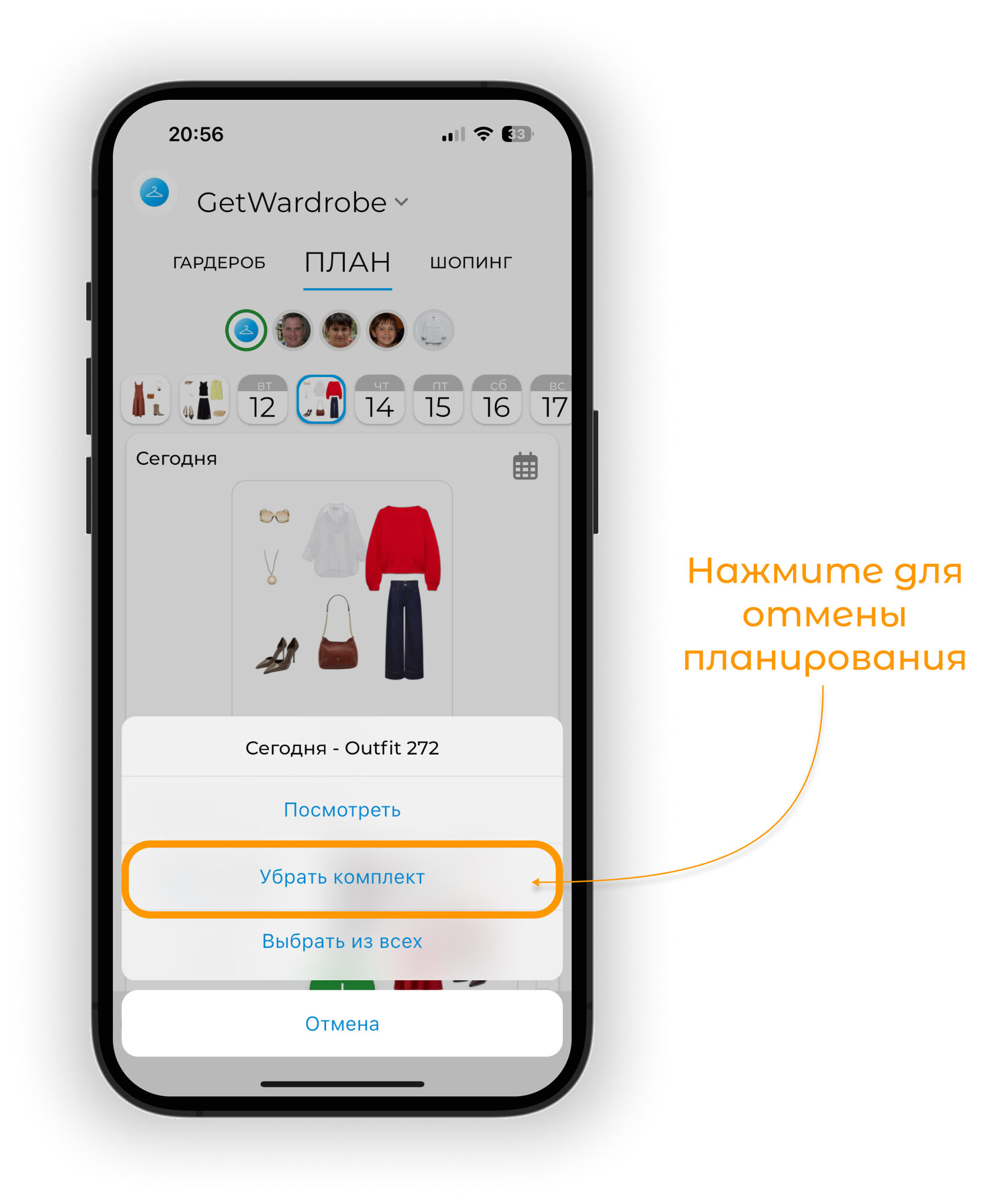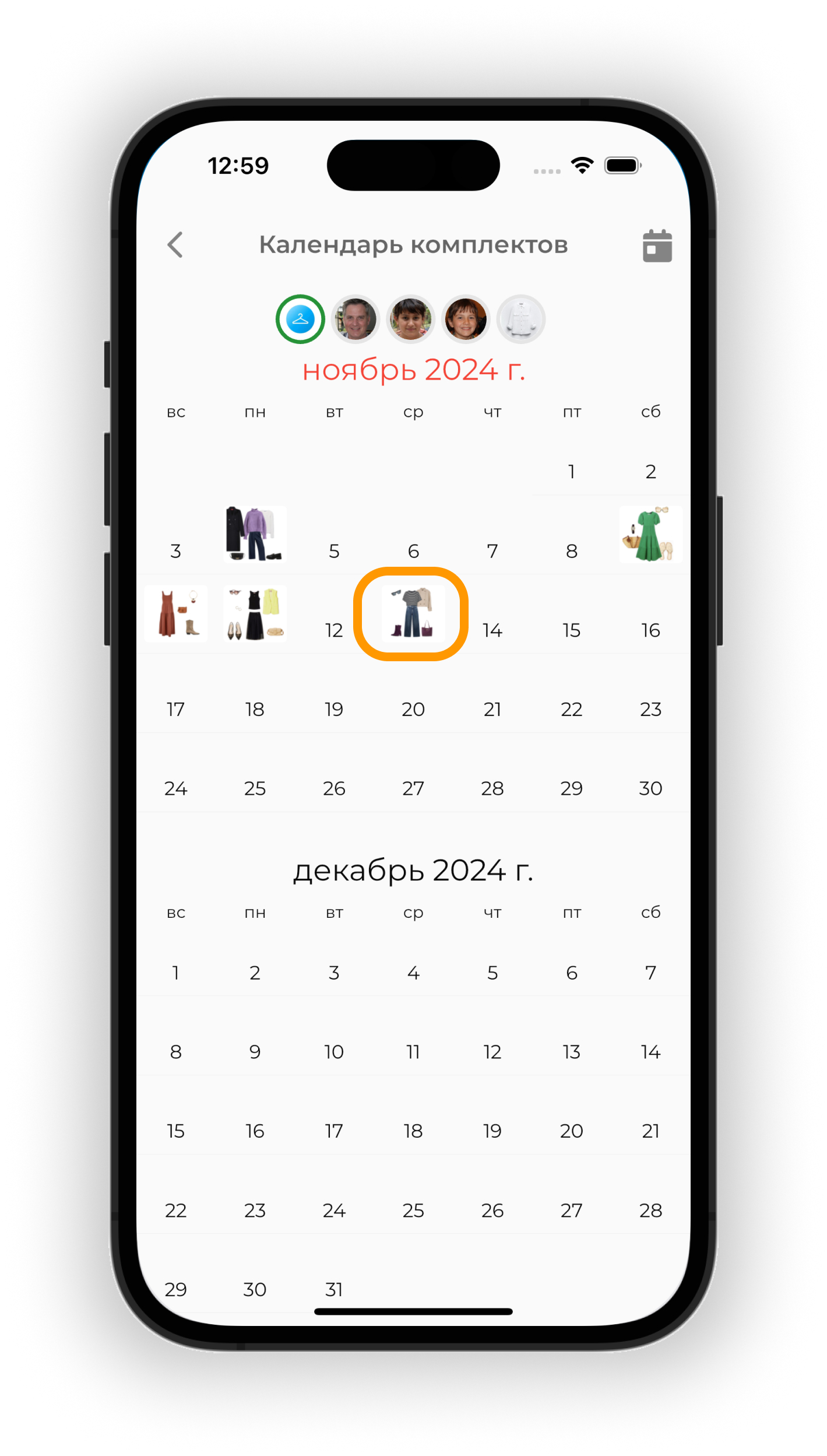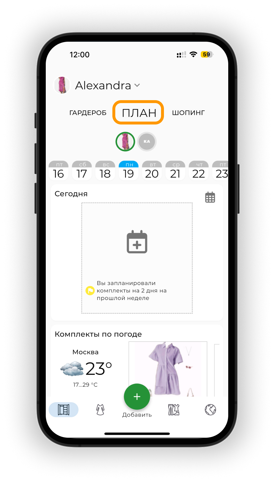 Планируйте образы на будущие даты в календаре. Используйте прогноз погоды для выбора подходящих образов и отслеживайте использование вещей через статистику.