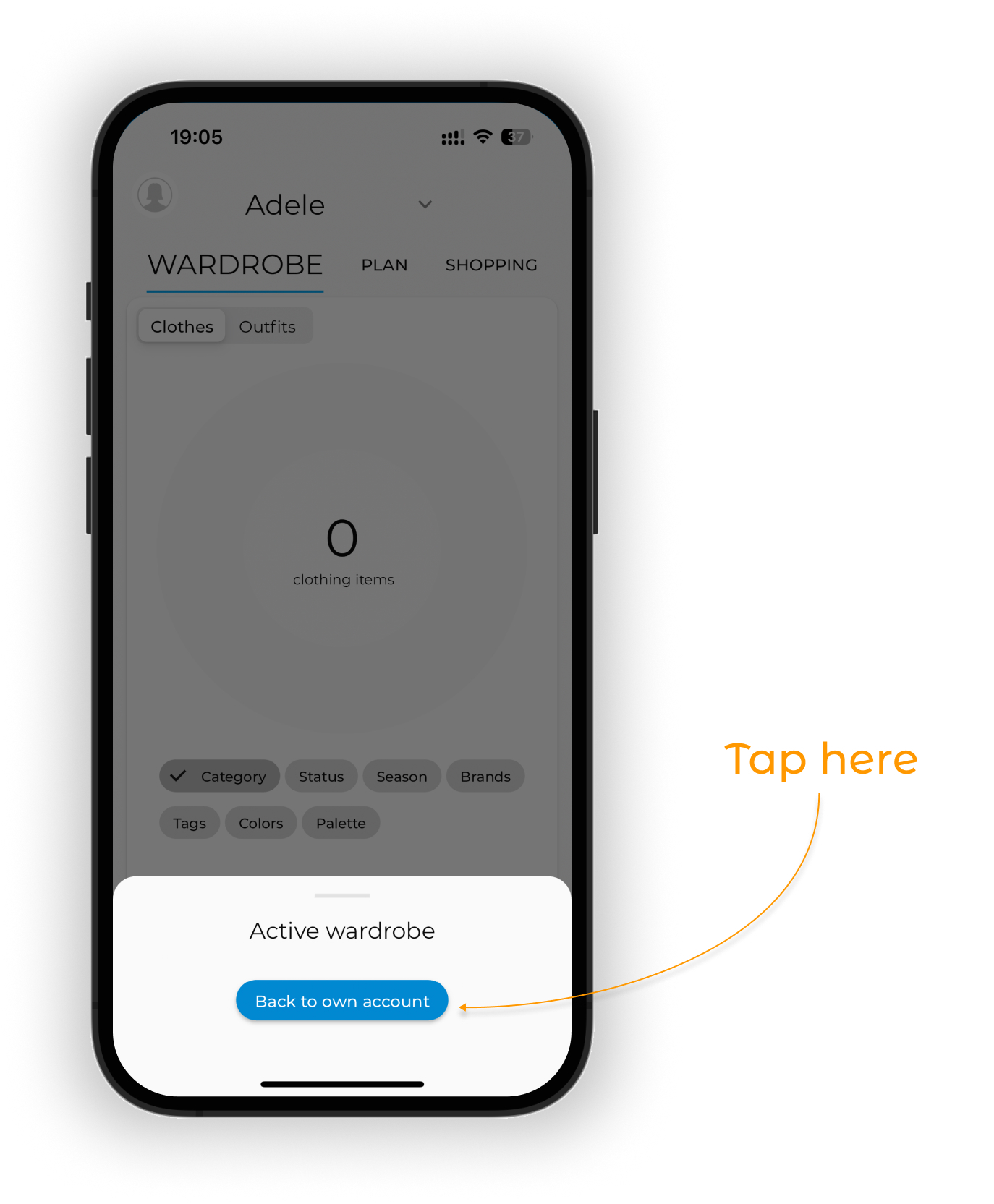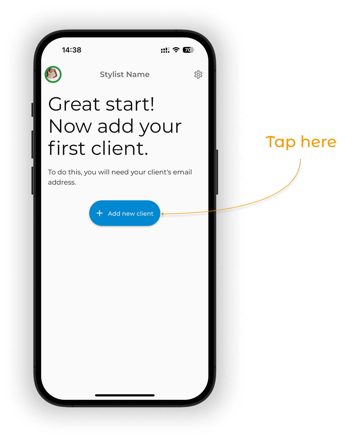 To return to your stylist account, tap the down arrow next to the client’s name.