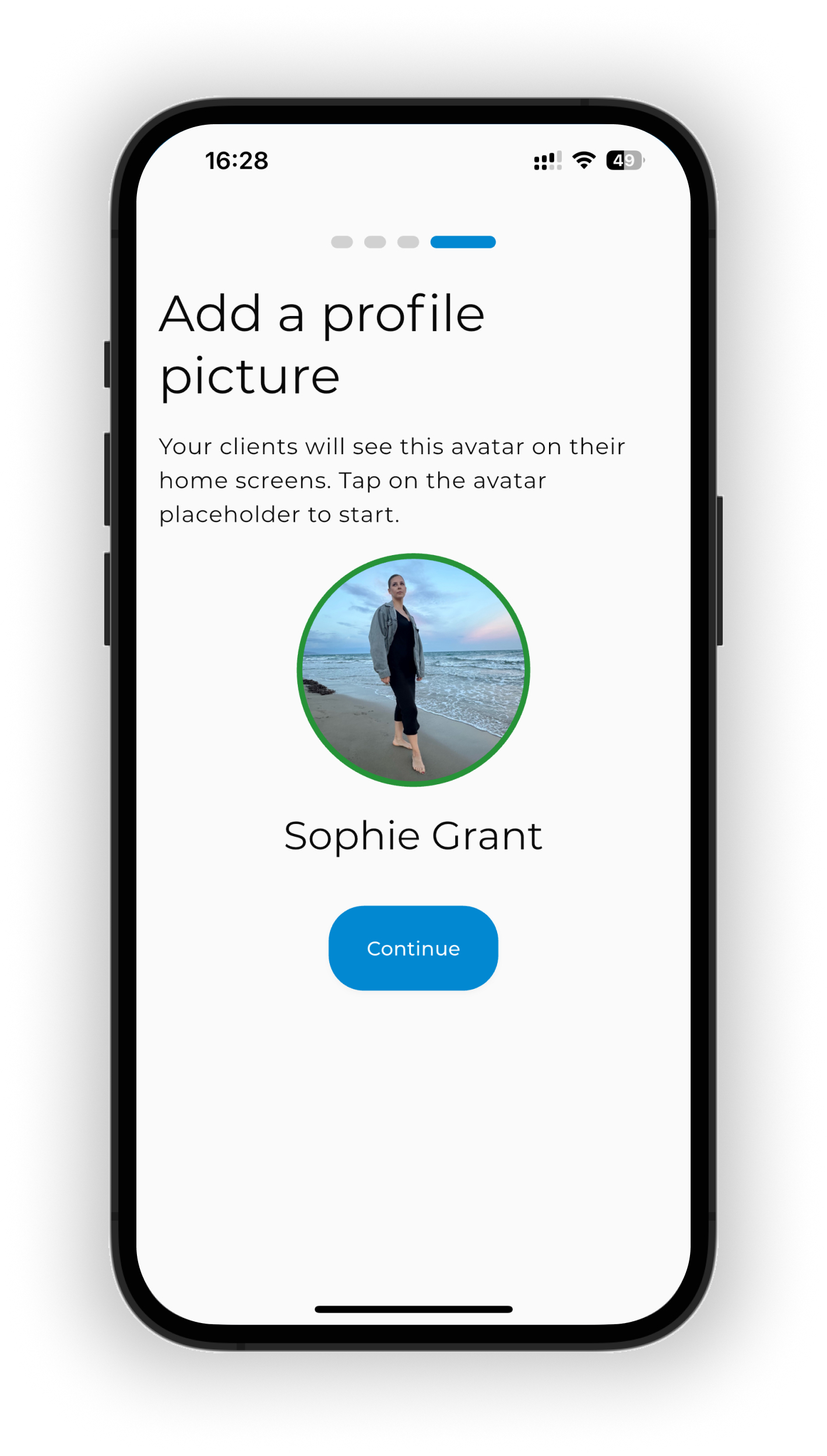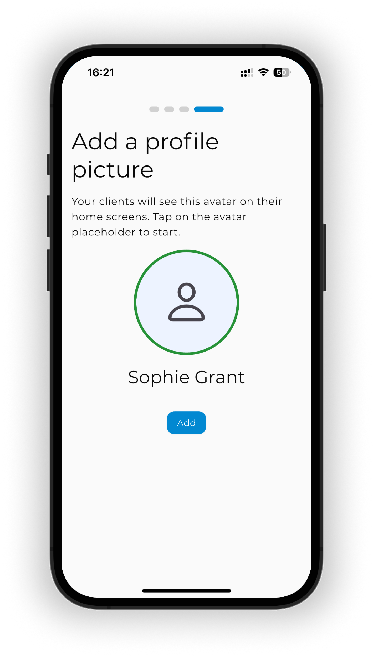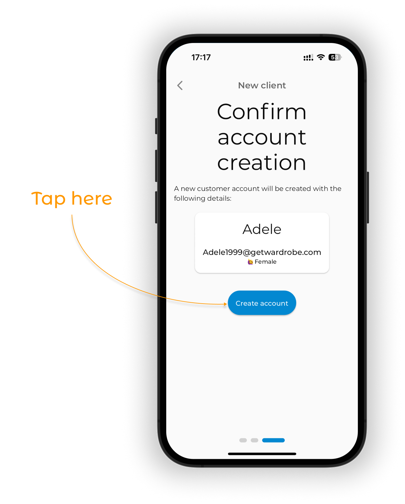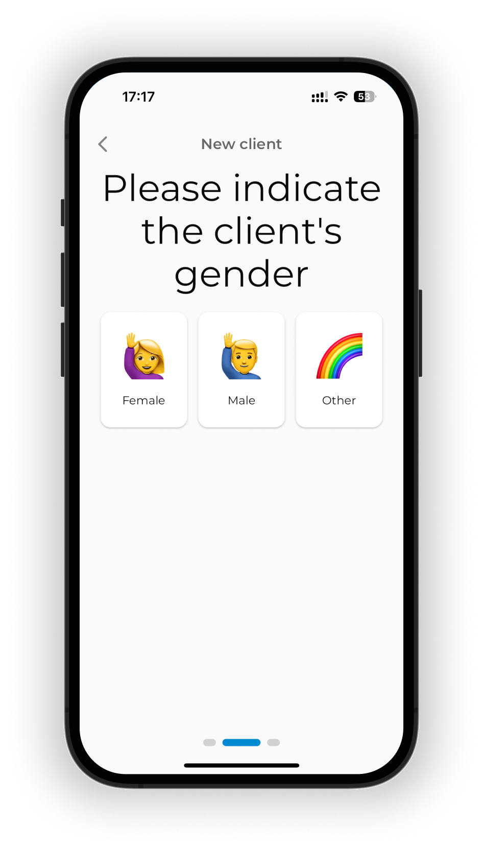 Select the client’s gender by tapping one of the options. Gender affects which clothing categories they see in the app.
