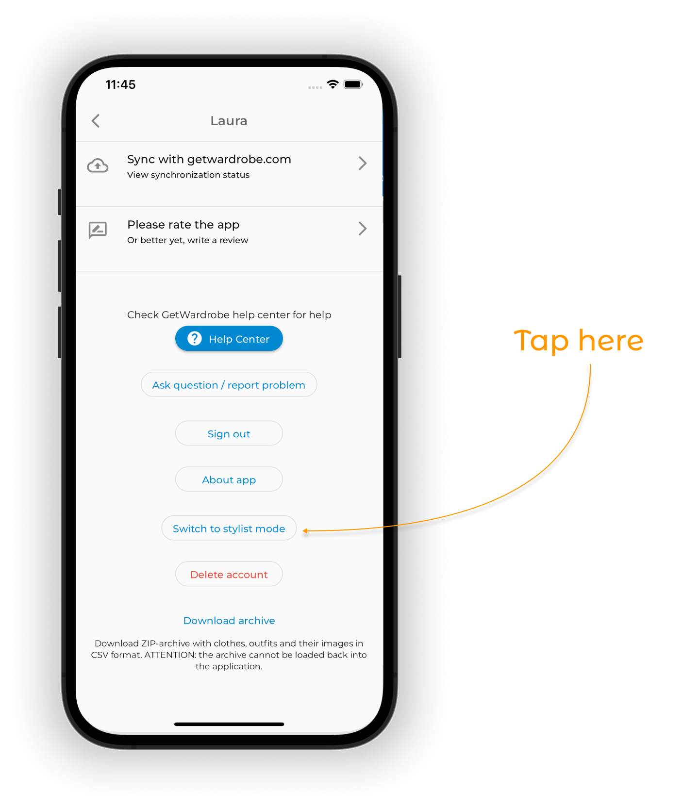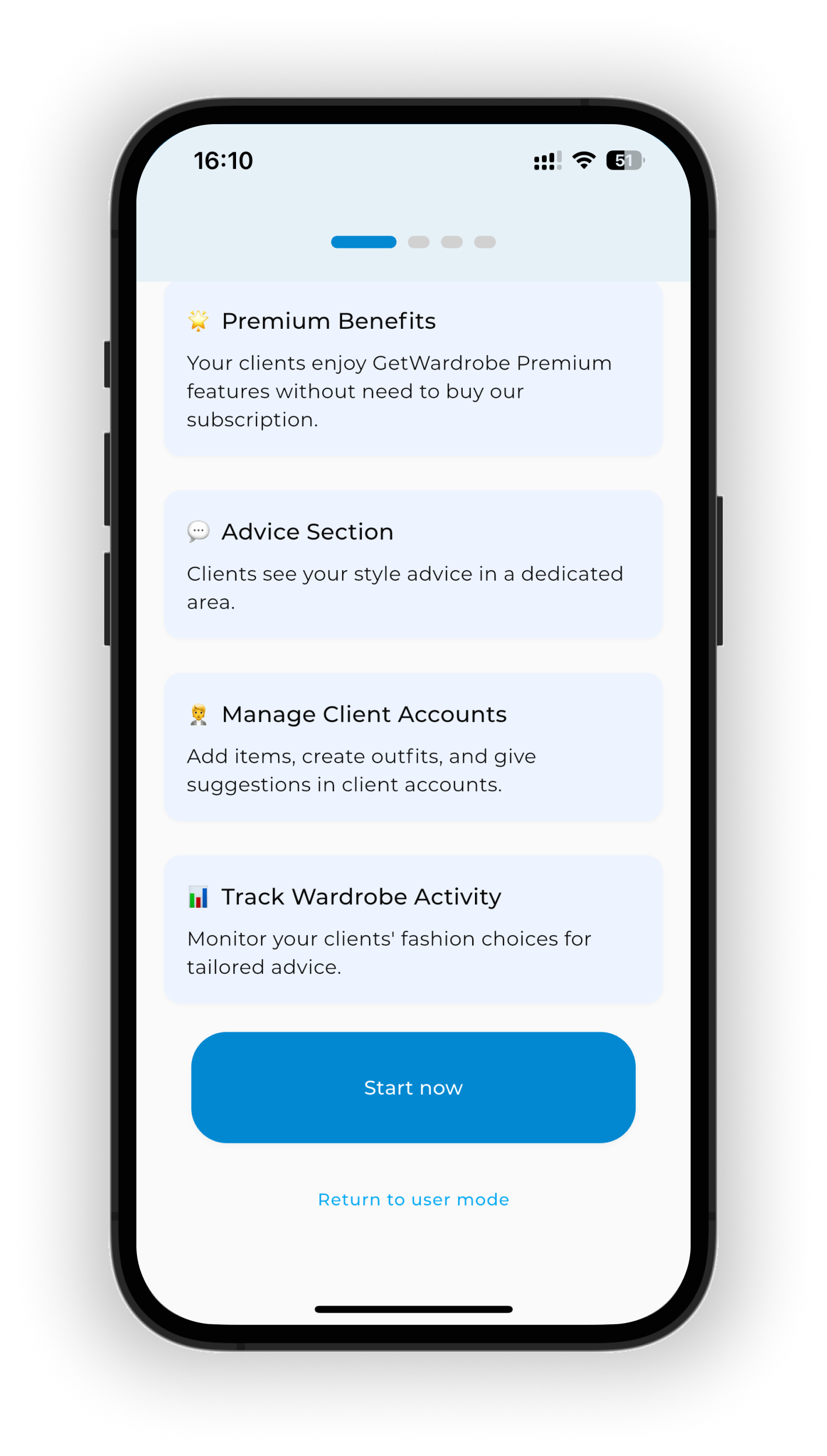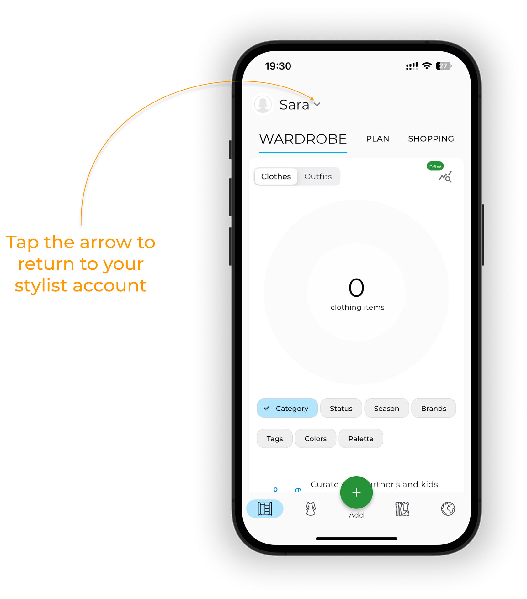 Switch to Stylist Mode to manage client wardrobes, provide styling advice, and access professional tools for building your styling business.