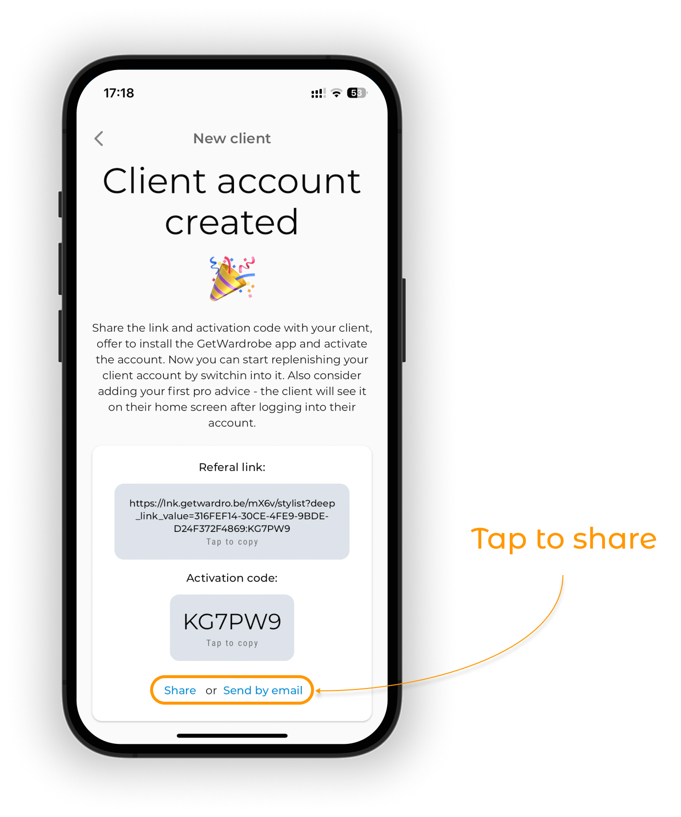You can send the activation link and code later. They’re available on the main screen, right under the client’s name.