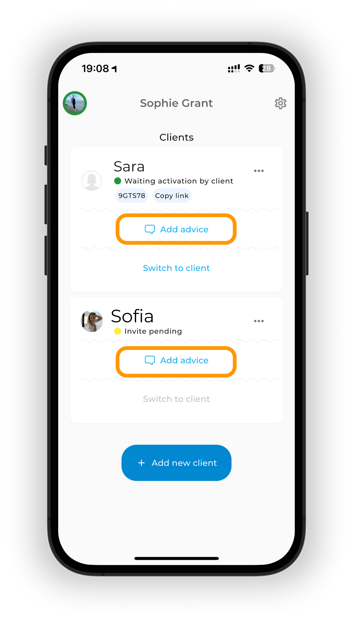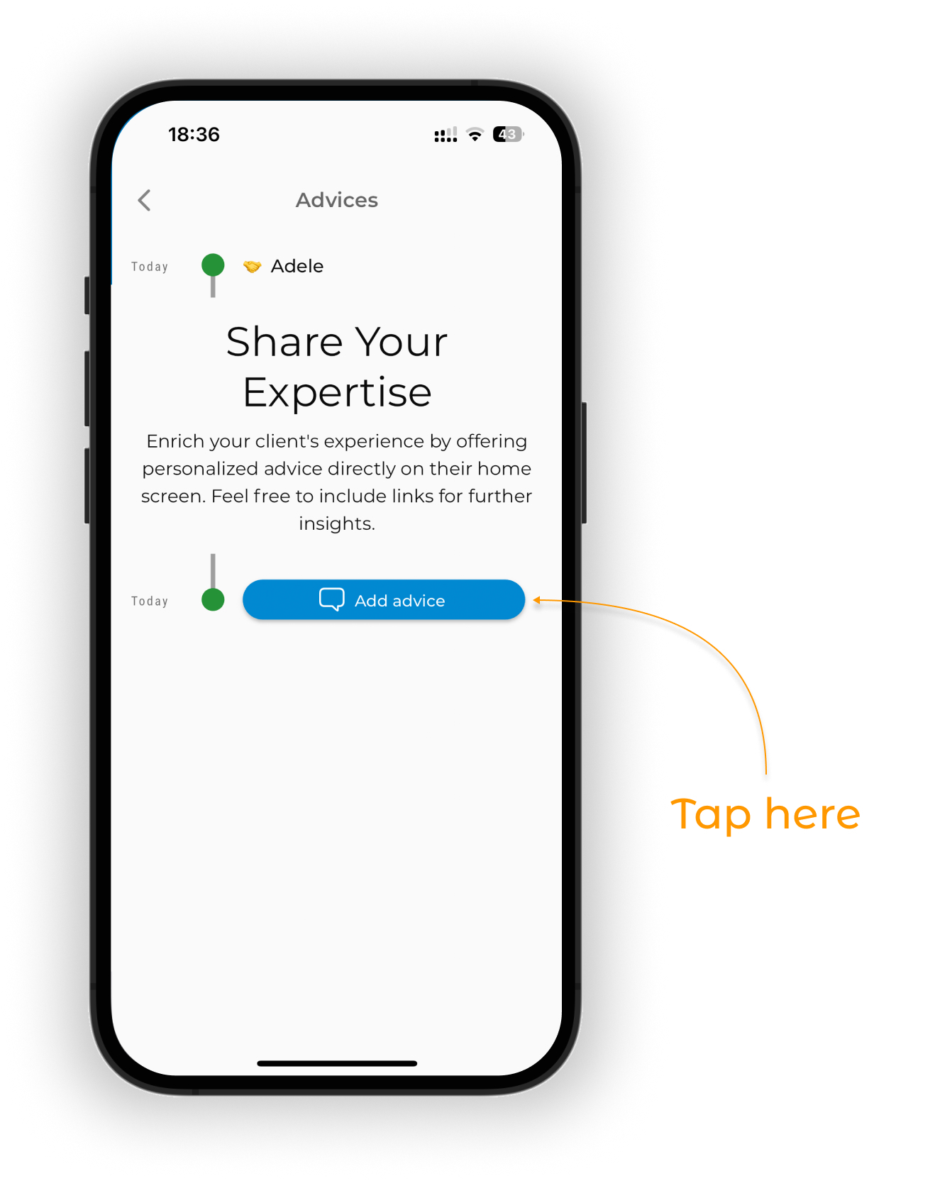 💡 Your client will see your advice right on their main screen — and you’ll both be able to revisit it anytime in the Advice history.